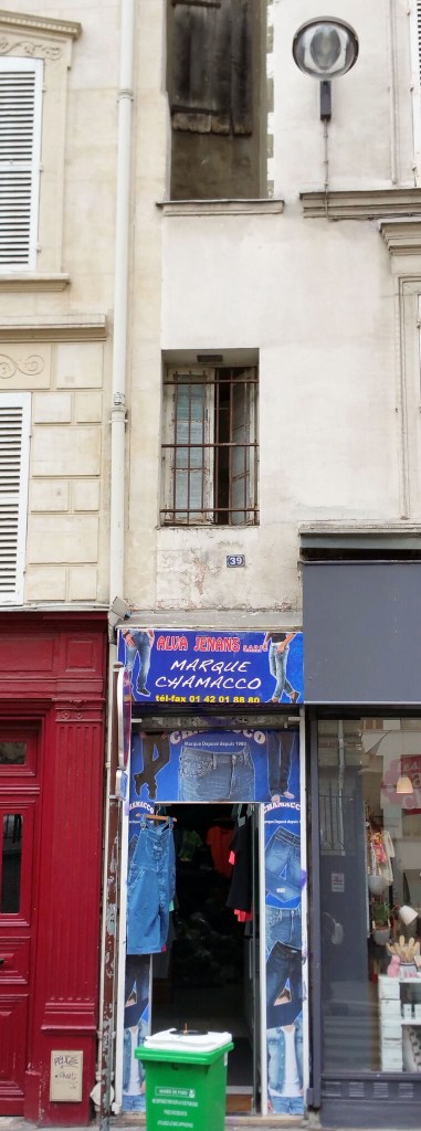 petit détour par le 39 de la rue du château d’eau où se trouve la maison la plus étroite de paris: 1,20 m de large sur 5 m de haut. anciennement un passage bouché par cet « immeuble » pour cause de querelles d’héritage…