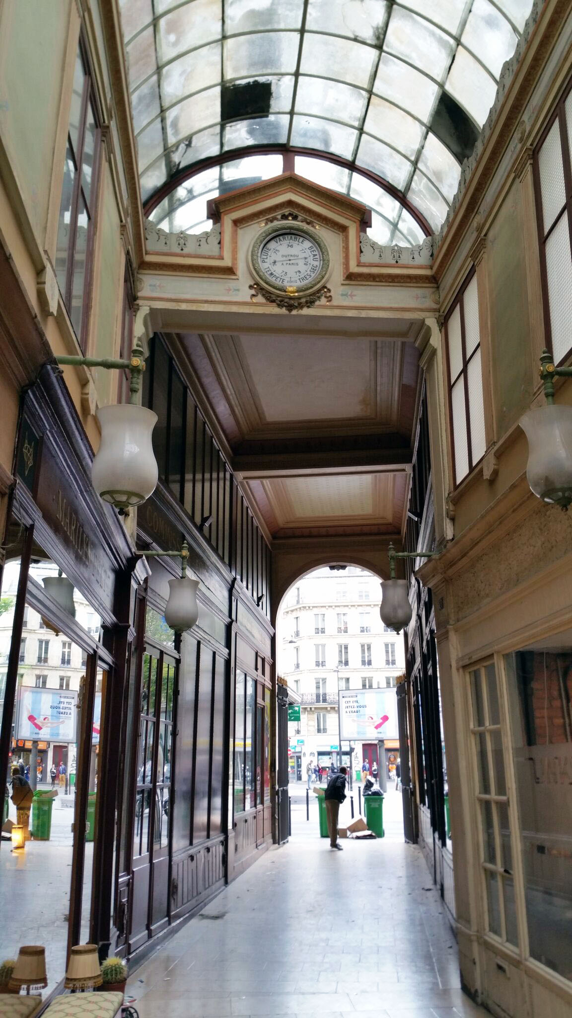 passage du bourg-l’abbé. verrière et baromètre, flanqué de deux statues symbolisant l’artisanat et la petite industrie, ce passage est plein de vieilles boutiques non dénuées de charme.