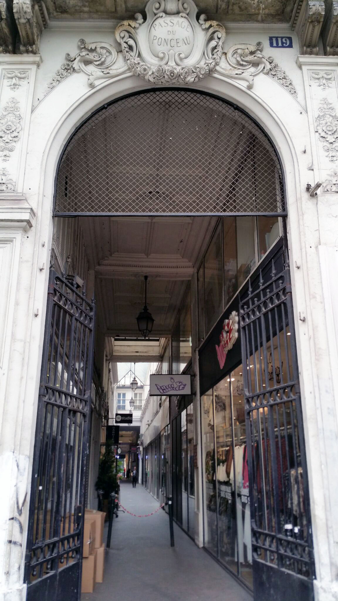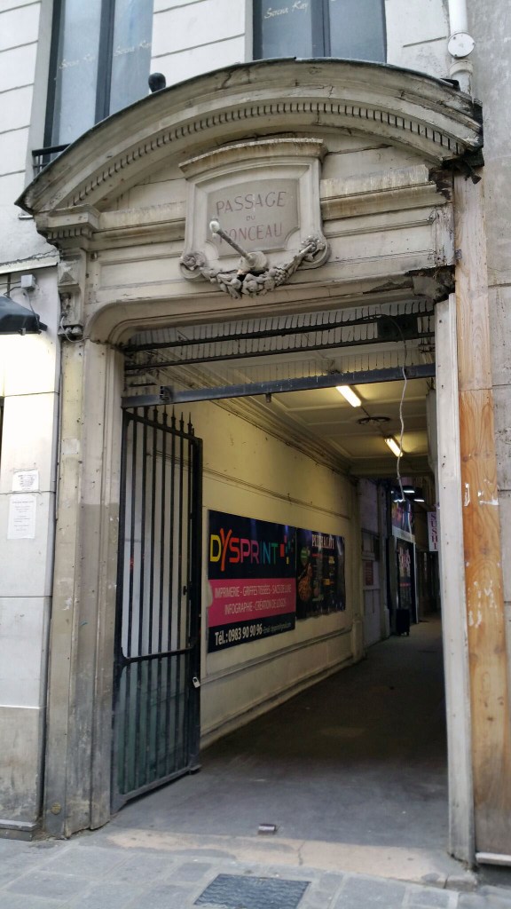 passage de ponceau. le passage tient son nom d’un petit pont qui couvrait un égout à ciel ouvert au-dessus de la rue saint-denis. on y trouve fringues et fast-foods casher.