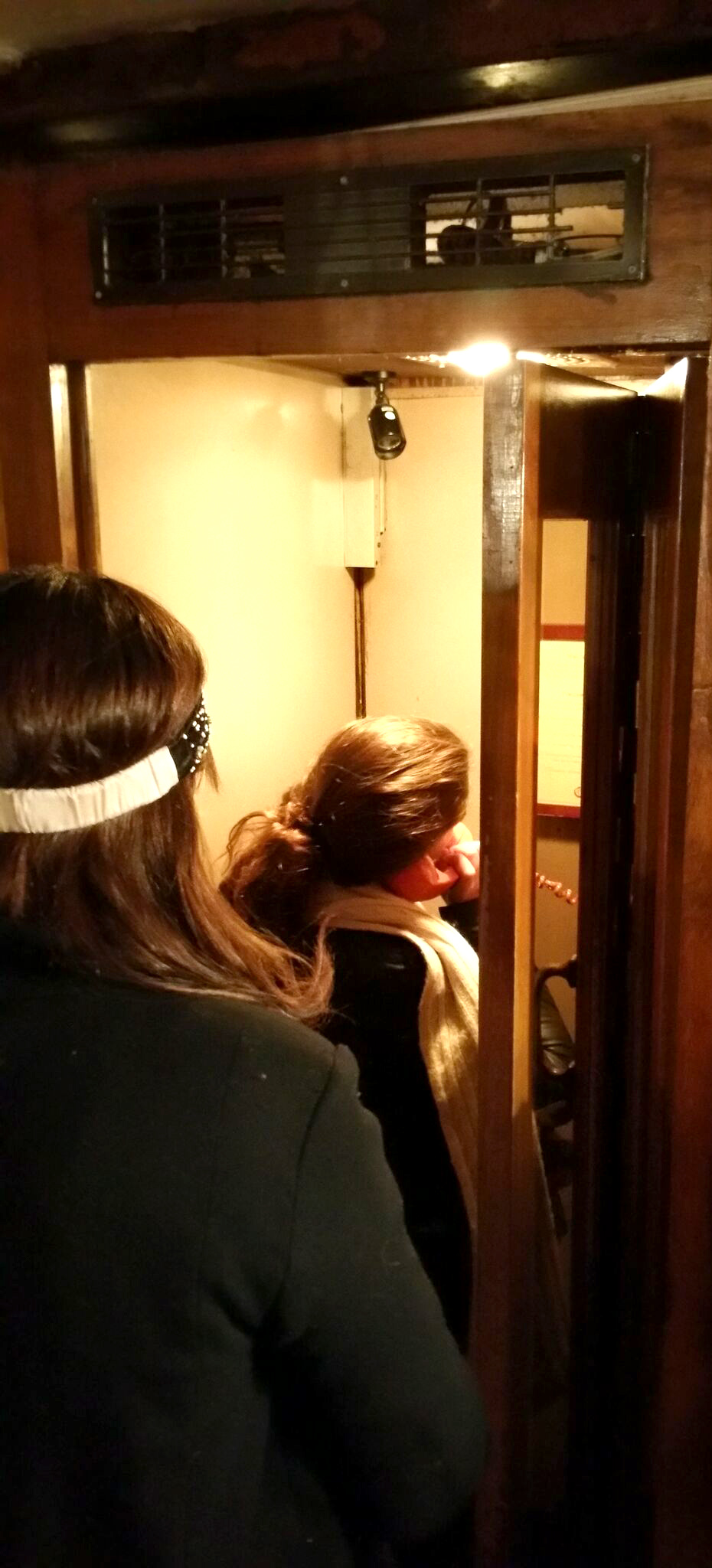 en plein east village, au bout du bout de st. mark’s place, entre l’avenue a et la 1ère avenue, il y a crif dogs. vous descendez quelques marches et vous vous retrouvez dans un boui-boui à hot dogs qui pue le graillon comme il y en a tant à new york. quel intérêt, me demanderez-vous? entrez seulement, comme disent les suisses, vous remarquerez sur la gauche, dans un renfoncement, une cabine téléphonique. et? entrez-y, composez le 1 et raccrochez immédiatement après. quelques instants plus tard, la paroi du fond de la cabine s’ouvrira et une serveuse prendra votre réservation. il s’agit en fait du please don’t tell, sans doute le bar le plus secret de manhattan. nous n’avons malheureusement pas eu le courage de patienter les 45 minutes que la jeune femme exigeait avant de nous placer. j’ai juste eu le temps de voir une partie la salle, un endroit aveugle qui m’a paru petit. leur site internet – que dis-je leur site, leur page – en donne une version plus grande et bien plus glamour, avec un zinc rétroéclairé façon shining…