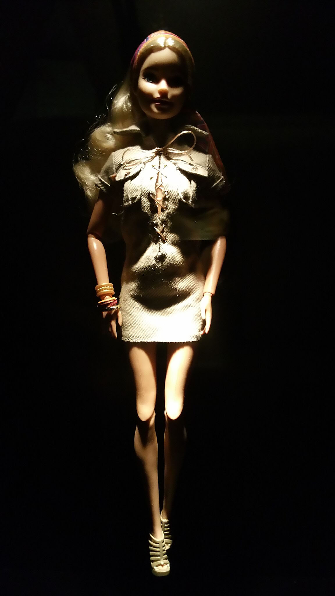 entre-temps, même si son image reste à jamais celle d’une jeune femme blonde, aux yeux bleus et à la peau claire (et, il faut bien le dire, un peu nunuche), ses créateurs se sont vite attachés à lui donner plusieurs visages, par la couleur de sa chevelure (blonde, brune et rousse) mais aussi, plus tard, par la couleur de sa peau. mattel proposera ainsi, dès 1968, une barbie noire, en pleines tensions raciales aux états-unis. au fil du temps, barbie adoptera 14 visages différents, 8 couleurs de peau, 18 couleurs d’yeux, 23 couleurs de cheveux et 4 silhouettes.
