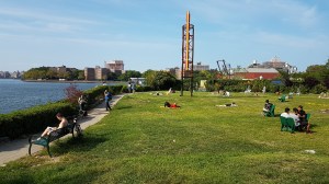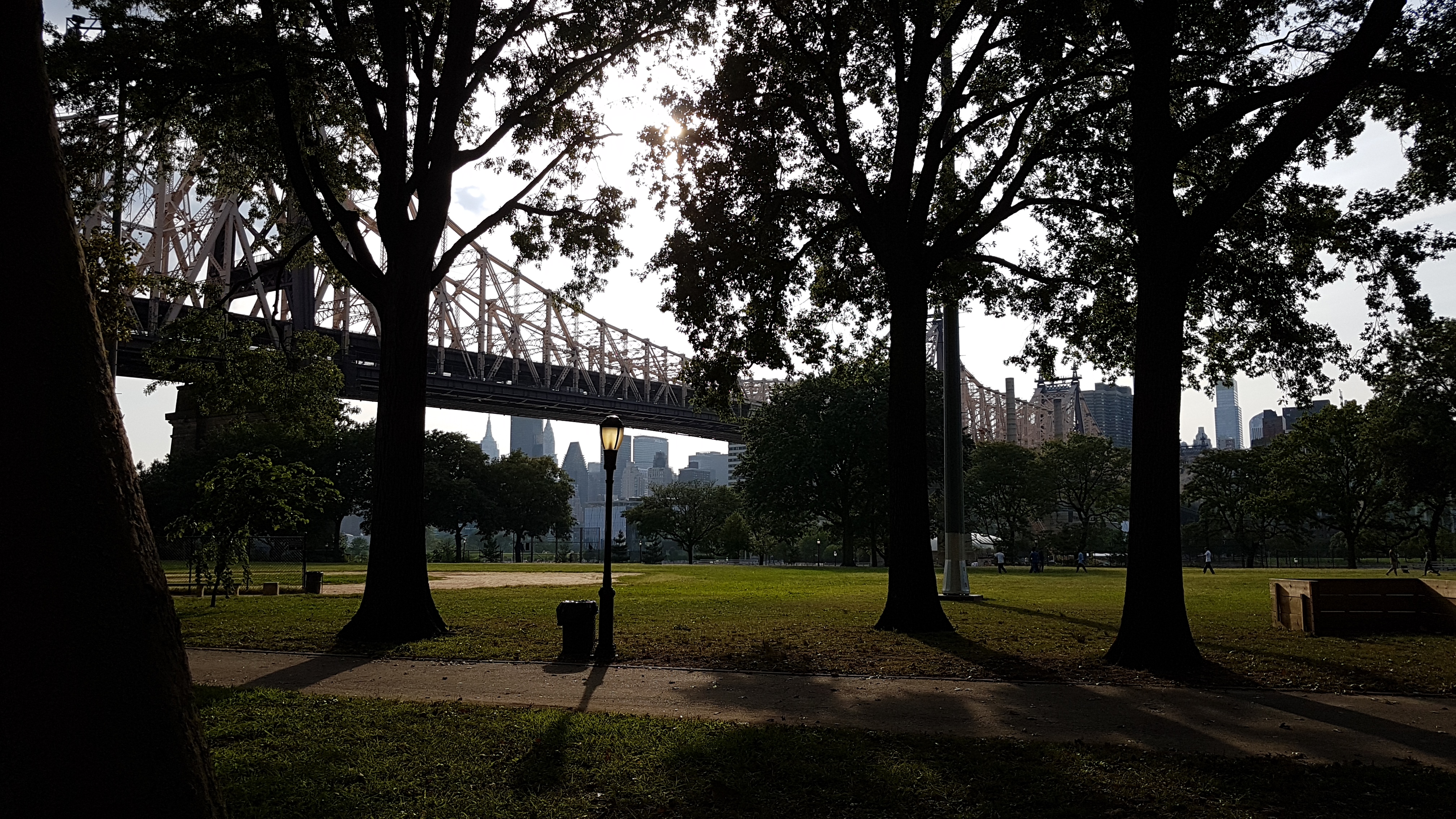 comme tous les parcs de new york et d’ailleurs, il est rempli le dimanche venu de familles et de leur progéniture. l’intérêt du queensbridge, qui longe l’east river et qui n’est pas spécialement petit, est qu’il est situé au pied du ed koch queensboro bridge. et qu’on se croirait dans un film, tant la vue est à la fois familière et spectaculaire…