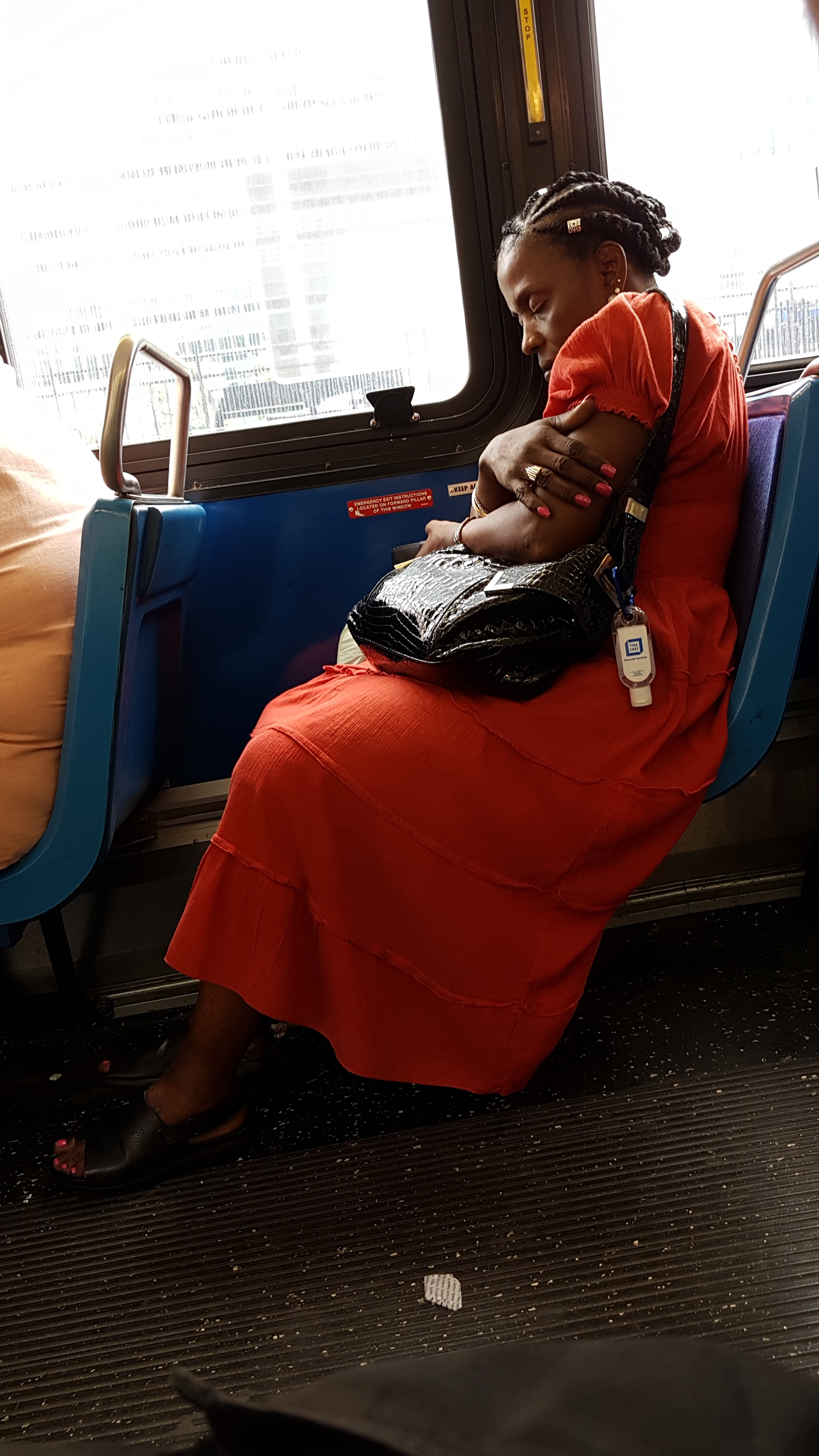 je n’apprendrai à personne que le bus reste le moyen sinon le plus sympa du moins le plus pratique pour visiter une ville – new york ne faisant pas exception – ou juste pour aller d’un point à un autre non desservi par le métro, en l’occurrence pour traverser manhattan d’est en ouest ou vice-versa. il faut savoir qu’ici les bus (comme les métros d’ailleurs) sont de deux types: les « normaux », qui font halte à tous les arrêts, et les express, indiqués « +select », qui ne font pas halte à tous les arrêts. quelle ne fut pas notre surprise la première fois quand nous constatâmes que le bus ne s’arrêtait pas malgré nos demandes répétées… lol. nous étions montés dans un +select sans le savoir. à propos de demande, si la plupart des bus sont équipés de boutons (jusque-là rien de spécial), certains ajoutent aussi des cordons jaunes qui courent le long des fenêtres et sur lesquels on tire pour demander l’arrêt. les portes arrières, par lesquels on sort (« please exit through the rear door« ), ne sont pas automatiques: elles sont équipées de bandes jaunes qu’il faut pousser ou toucher pour les ouvrir. tout un micmac. de plus, certains arrêts sont équipés de machines, d’autres pas. même si vous possédez une carte illimitée, il vous faut prendre un ticket à l’une de ces machines. pour cela, il suffit d’appuyer sur le bouton et d’insérer sa carte (v. c comme contacts avec les autochtones). juste au cas où vous seriez contrôlé dans le bus, ce qui n’arrive bien sûr jamais.